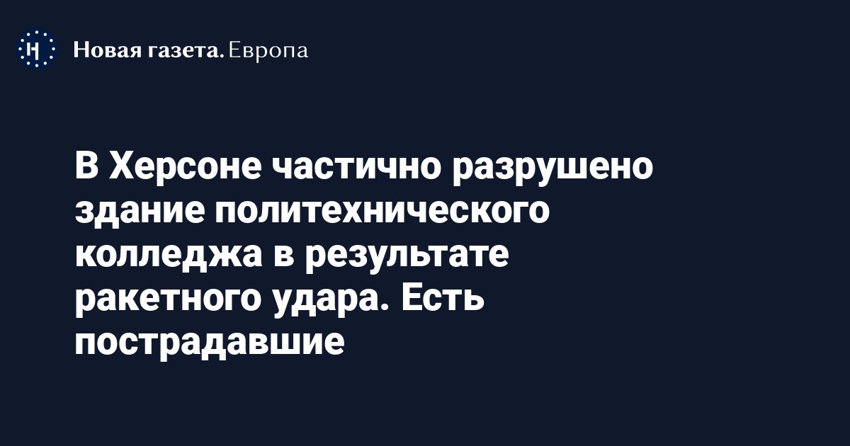 РИА Новости и ТАСС со ссылкой на представителей экстренных служб сообщили, что Вооруженные силы Украины нанесли ракетный удар по зданию политехнического колледжа в Херсоне.