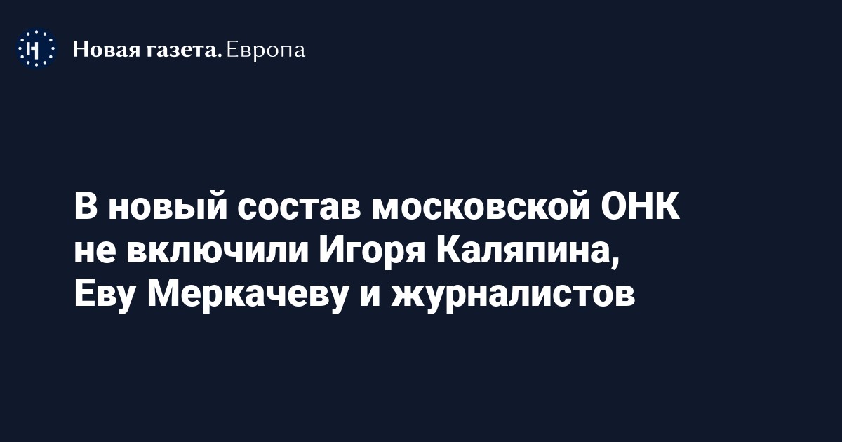 В новый состав московской Общественной наблюдательной комиссии не включили основателя «Комитета против пыток» Игоря Каляпина и обозревательницу «Московского комсомольца» Еву Меркачеву. На это обратила внимание Меркачева в телеграм-канале.