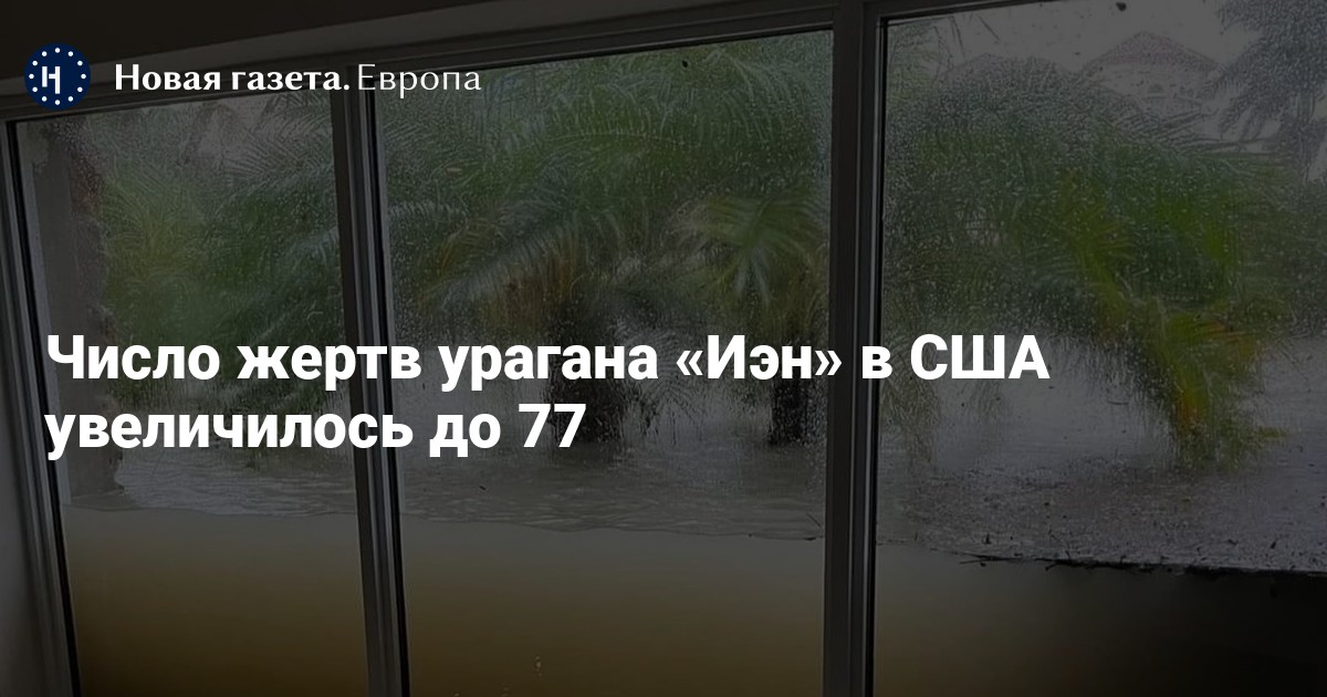 Число жертв урагана «Иэн», прошедшего по югу США и Карибскому бассейну, увеличилось до 77 — во Флориде и Северной Каролине. Об этом сообщает NBC со ссылкой на местные власти.