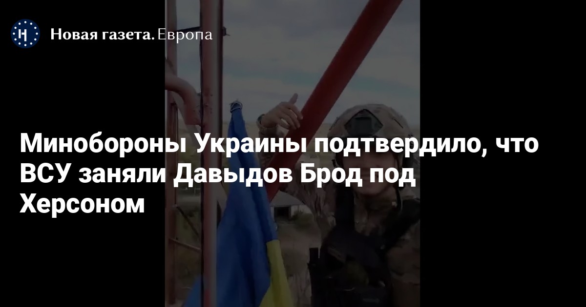 Министерство обороны Украины в твиттере опубликовало видео, на котором солдаты 35 отдельной бригады морской пехоты Вооруженных сил Украины (ВСУ) поднимают украинский флаг на телевышке в населенном пункте Давыдов Брод в Херсонской области.