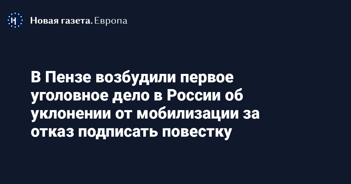 В Пензе возбудили первое в России дело об уклонении от мобилизации (ст. 328 УК). Об этом сообщил глава правозащитной группы «Агора» Павел Чиков.