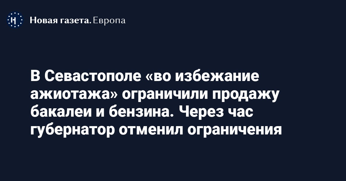 За час до этого Развожаев писал, что бензин в канистры отпускаться не будет, «чтобы не провоцировать искусственный ажиотаж». Он подчеркнул, что запаса бензина в Севастополе хватит на 40 суток, а запасов продуктов первой необходимости — более чем на три недели.