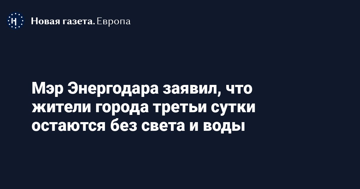 Жители Энергодара третьи сутки остаются без света и воды, заявил мэр города Дмитрий Орлов.