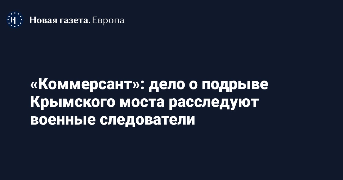 Уголовное дело о взрыве на Крымском мосту (ст. 205 УК РФ) поручили расследовать главному следственному управлению центрального аппарата СК. Об этом пишет «Коммерсант» со ссылкой на источники, близкие к следствию.