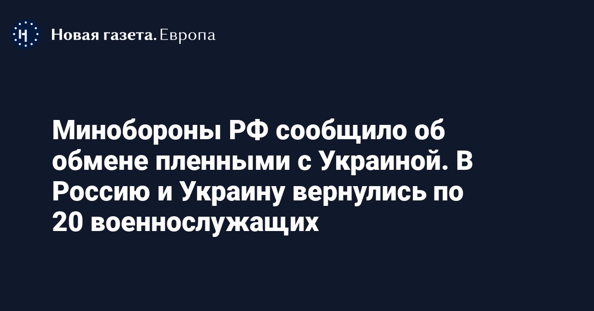 По данным МО РФ, в Россию вернулись 20 военнослужащих. «Всем освобожденным военнослужащим оказывается необходимая психологическая и медицинская помощь. В кратчайшие сроки они будут доставлены в медицинские учреждения Министерства обороны РФ для прохождения лечения и реабилитации», — сообщает МО РФ.
