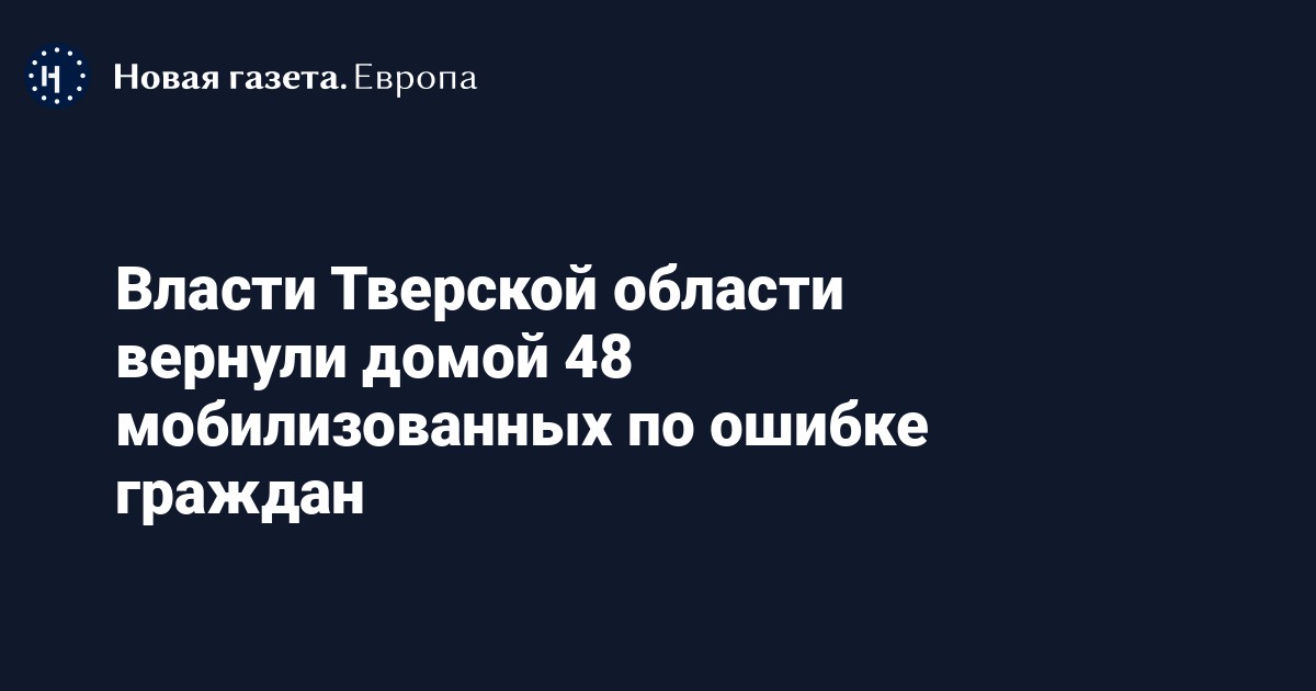 В Тверской области 48 ранее мобилизованных граждан вернули домой. Об этом губернатор Игорь Руденя заявил на телеканале «Россия-24 — Тверь».