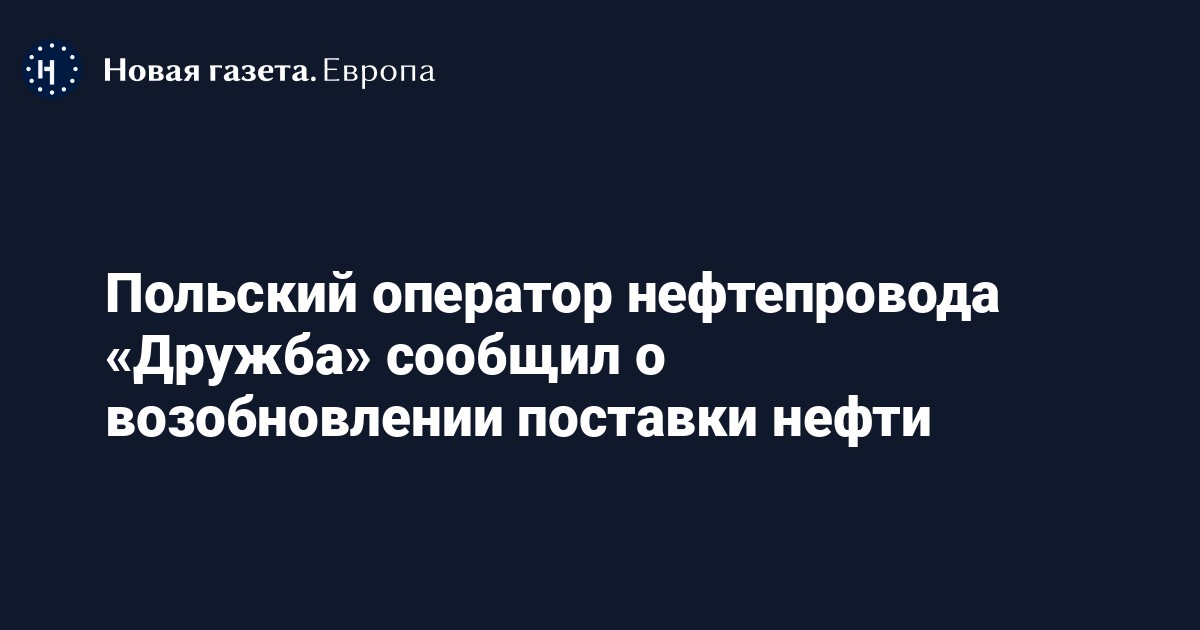 Польский оператор нефтепровода «Дружба» сообщил о возобновлении поставки нефти