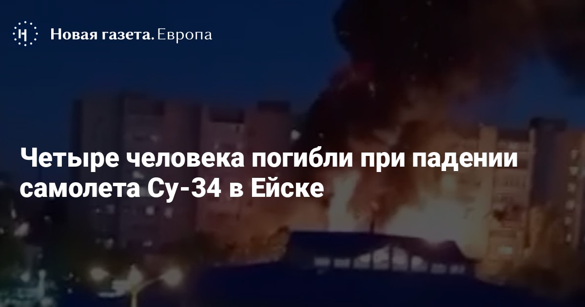 В Ейске в результате падения военного самолета Су-34 во дворе жилого дома погибли 4 человека, 25 жителей пострадали. Об этом сообщает Оперштаб региона.