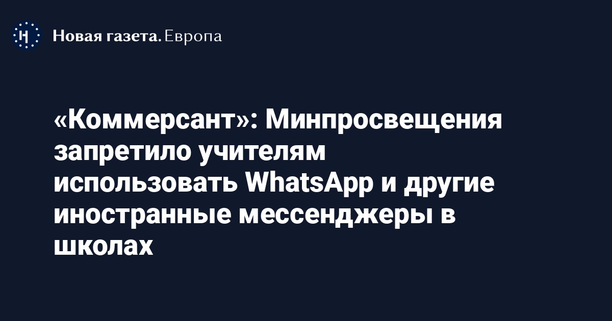 Минпросвещения запретило учителям использовать WhatsApp и другие иностранные мессенджеры в образовательном процессе или на рабочих местах в школах, сообщает «Коммерсант».