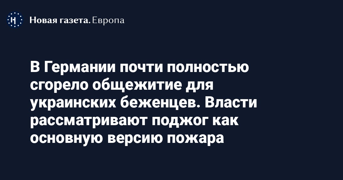 В Германии почти полностью сгорело общежитие для украинских беженцев. Власти рассматривают поджог как основную версию пожара