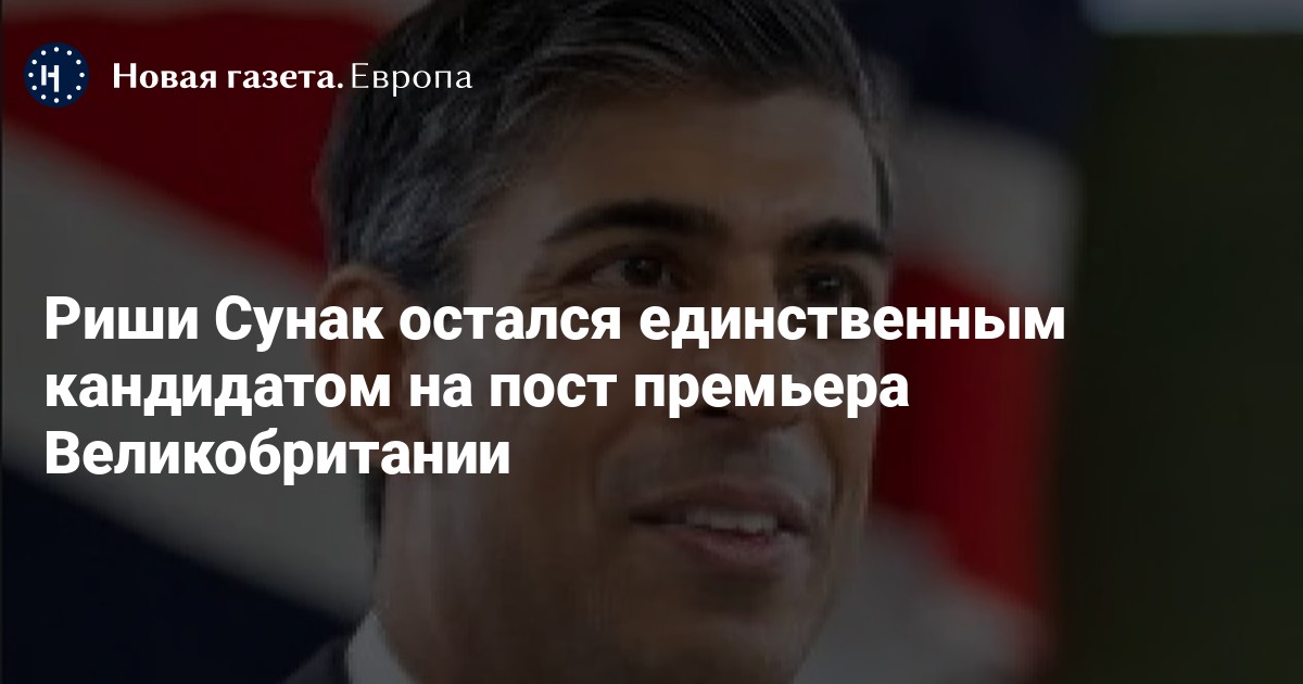 Бывший министр финансов Великобритании Риши Сунак остался единственным кандидатом на пост главы Консервативной партии. Он станет следующим премьер-министром, сообщает «Би-би-си».