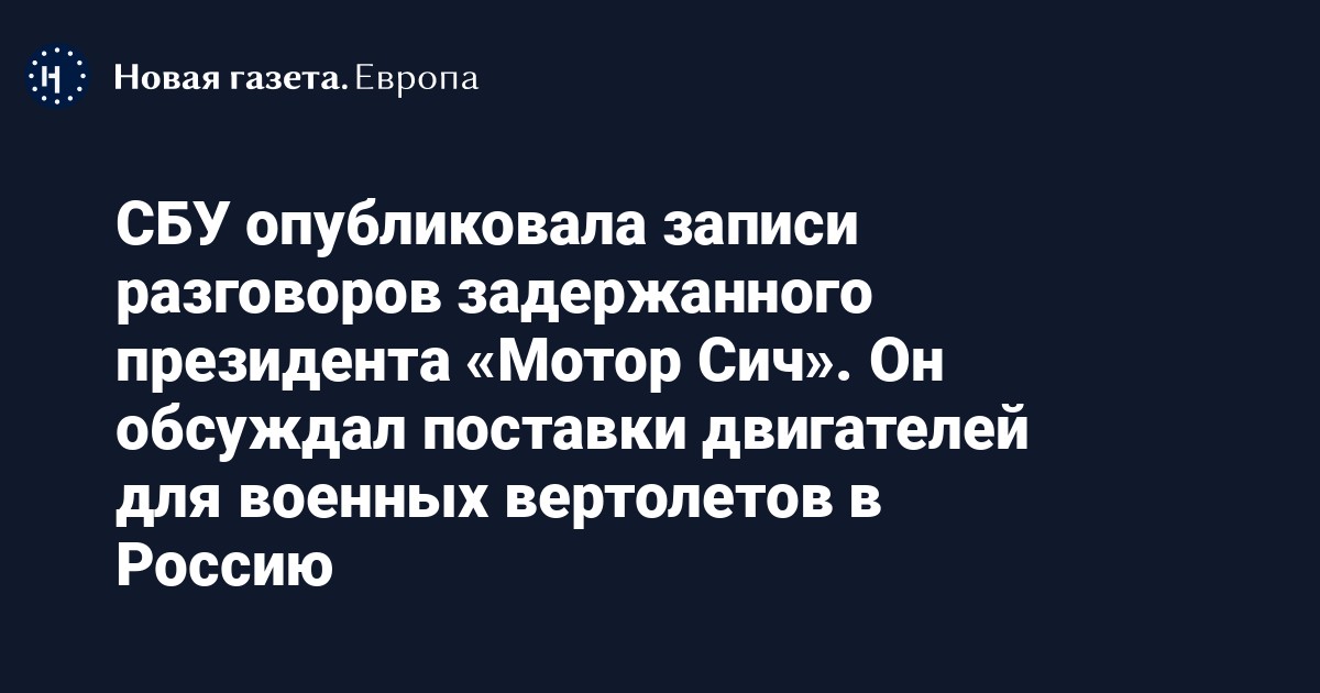Служба безопасности Украины опубликовала записи телефонных разговоров арестованного вчера почетного президента «Мотор Сич» Вячеслава Богуслаева.