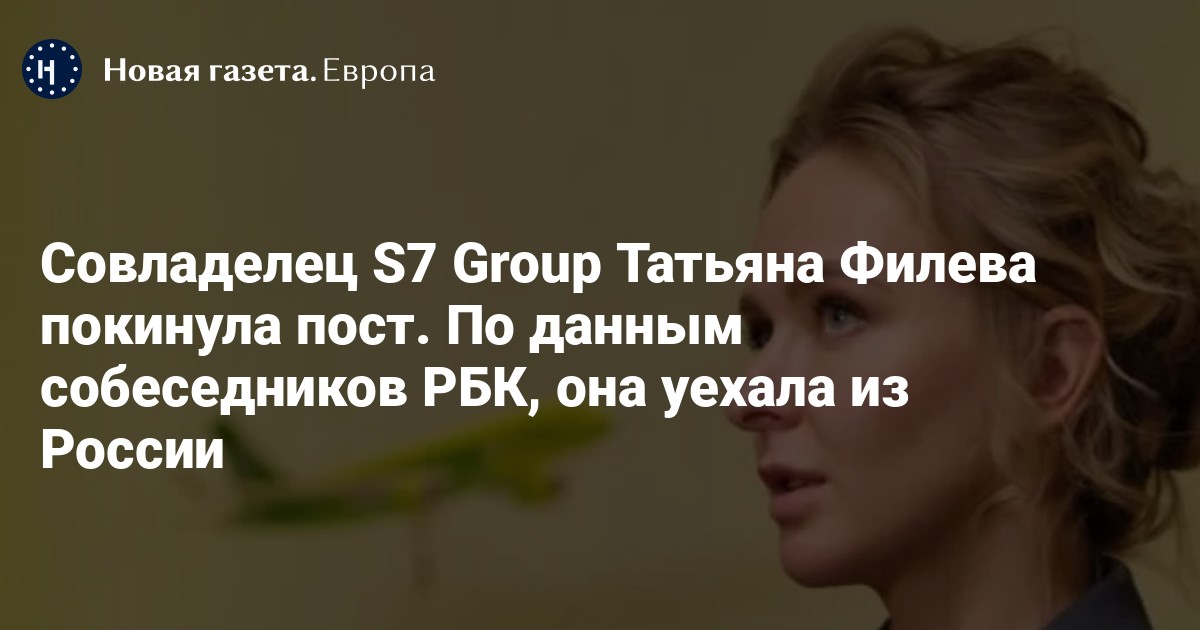 Собеседники РБК говорят, что Филева временно уехала из России. Ранее у нее были планы получить образование за рубежом. Однако в S7 эту информацию не комментируют, отмечая, что Филева как акционер продолжит принимать участие в решении стратегических вопросов холдинга.