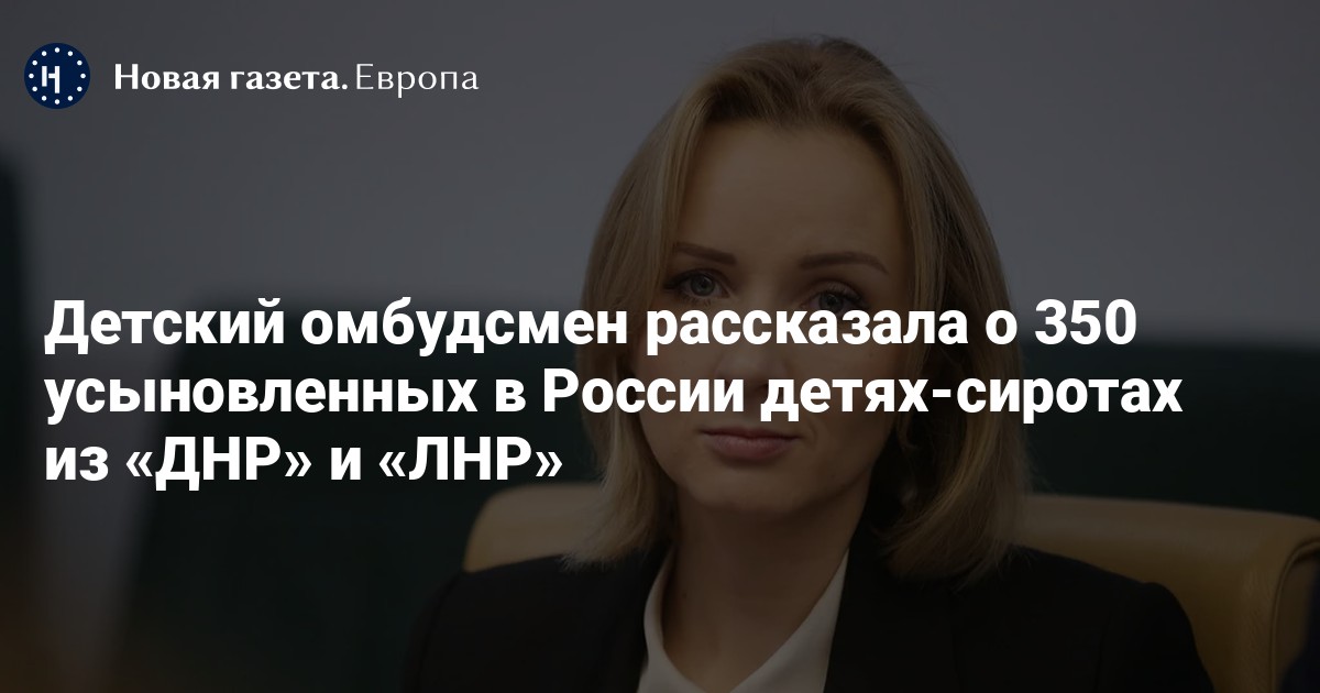 В России усыновили 350 детей-сирот из «ДНР» и «ЛНР», еще тысяча — ожидает усыновления. Об этом заявила уполномоченная по правам ребенка в России Мария Львова-Белова, передает РБК.