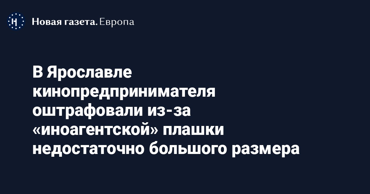 Фрунзенский районный суд Ярославля оштрафовал гендиректора киноклуба «Нефть» Андрея Алексеева на 10 тысяч рублей из-за публикации видео во «Вконтакте» без упоминания статуса «иностранного агента» и пост в той же соцсети с «недостаточно большим» размером шрифта у плашки.