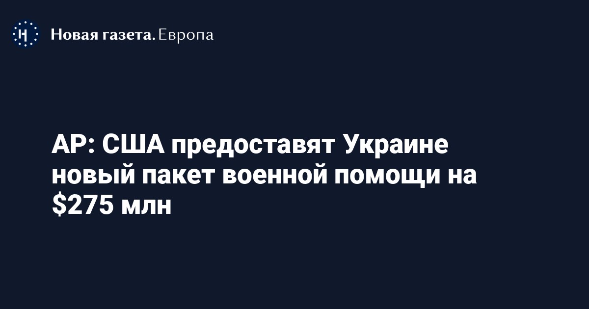 США предоставят Украине новый пакет военной помощи на $275 млн, сообщает Associated Press со ссылкой на источники.
