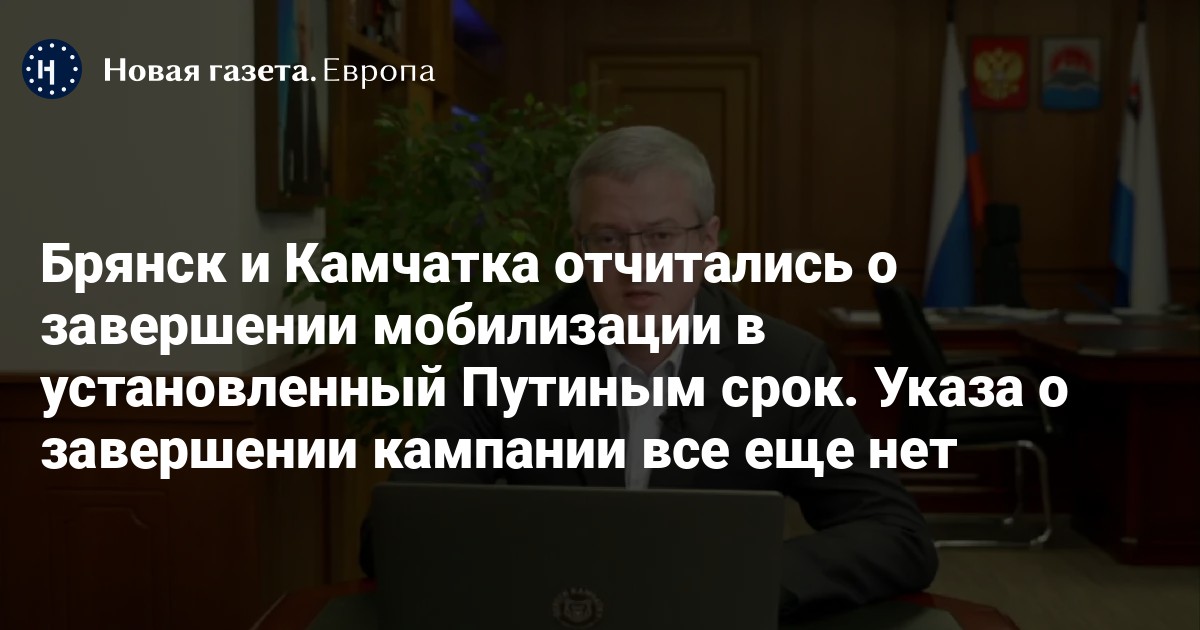 Главы Брянской области и Камчатского края Александр Богомаз и Владимир Солодов отчитались о завершении «частичной мобилизации» в регионе.