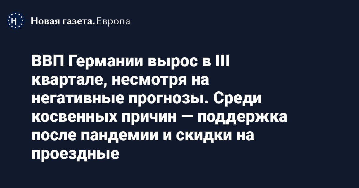 ВВП Германии, несмотря на негативные прогнозы, вырос в III квартале, отсрочив рецессию, которую аналитики все еще ожидают на фоне стремительного роста инфляции и энергетического кризиса, пишет Bloomberg.