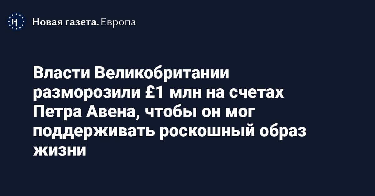 В июле сообщалось, что лондонский суд разрешил Авену оплачивать «основные нужды» со своих счетов. При этом неизвестно, сколько конкретно денег мог тратить миллиардер.