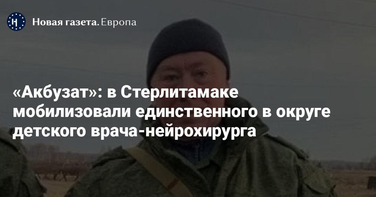 В Республике Башкортостан мобилизовали врача Городской больницы №2 города Стерлитамак Ахмета Абубакирова. Он является единственным сертифицированным детским врачом-нейрохирургом в округе, сообщает движение за гражданские права «Акбузат».