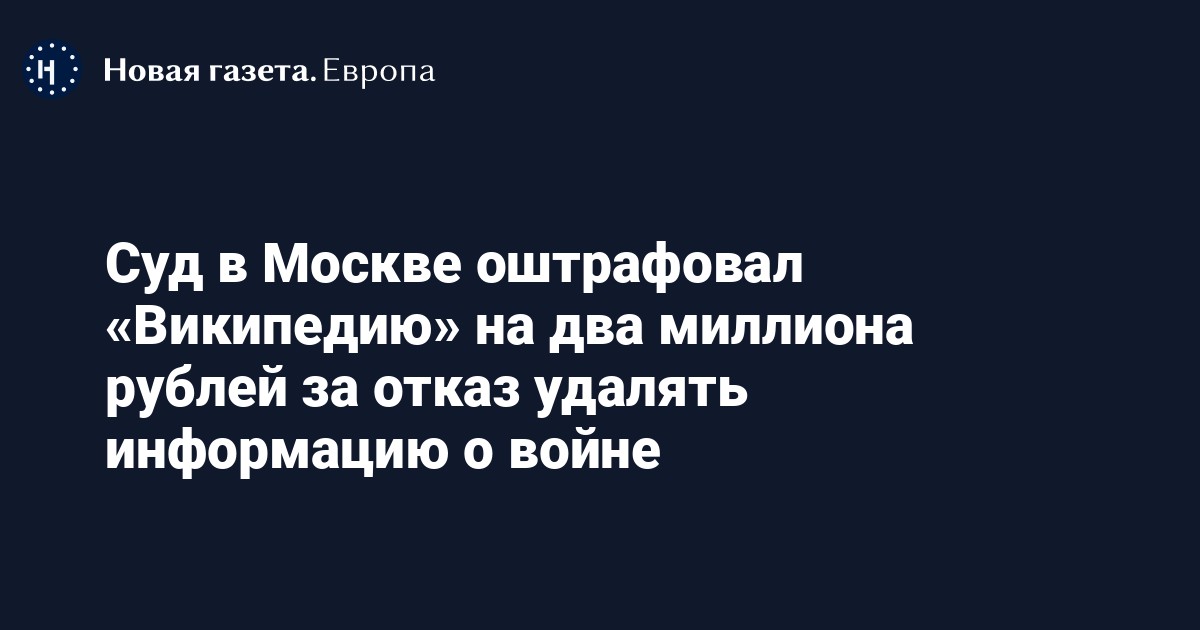 Мировой судья участка №422 Таганского района Москвы оштрафовал поддерживающий «Википедию» фонд Wikimedia Foundation на 2 млн рублей за отказ удалять статьи про войну в Украине. Об этом сообщает «Медиазона» со ссылкой на пресс-службу суда.