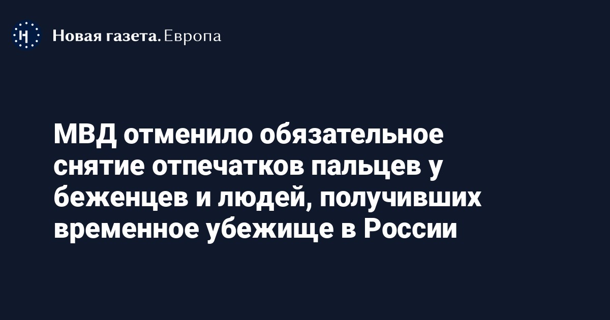 Министерство внутренних дел (МВД) РФ выпустило приказ об отмене обязательной дактилоскопии беженцев и граждан, получивших временное убежище в стране. Документ опубликован на официальном интернет-портале правовой информации.