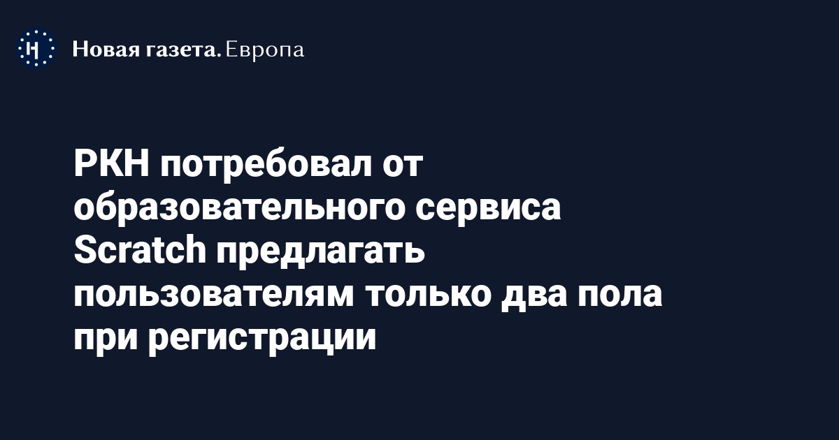 Роскомнадзор потребовал от детского образовательного сервиса Scratch оставить при регистрации только два варианта пола — мужской и женский. Об этом сообщается на сайте регулятора.