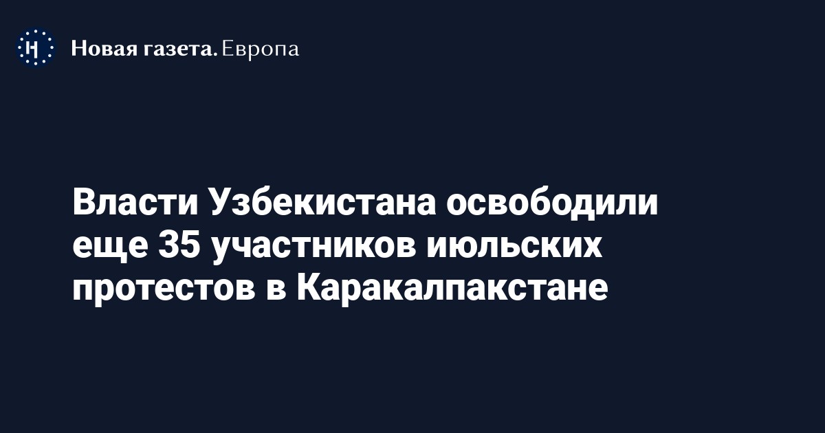 Генпрокуратура Узбекистана освободила еще 35 участников протестов в Каракалпакстане, они вернулись в семьи на основании госгарантий. Об этом сообщает радио «Озодлик» со ссылкой на омбудсмена Узбекистана Ферузу Эшматову.
