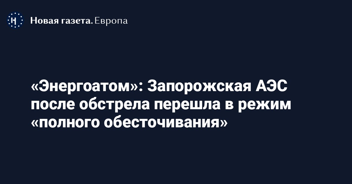 В результате обстрелов Запорожская атомная электростанция вынуждена была перейти в «режим полного обесточивания». Об этом сообщает «Энергоатом».