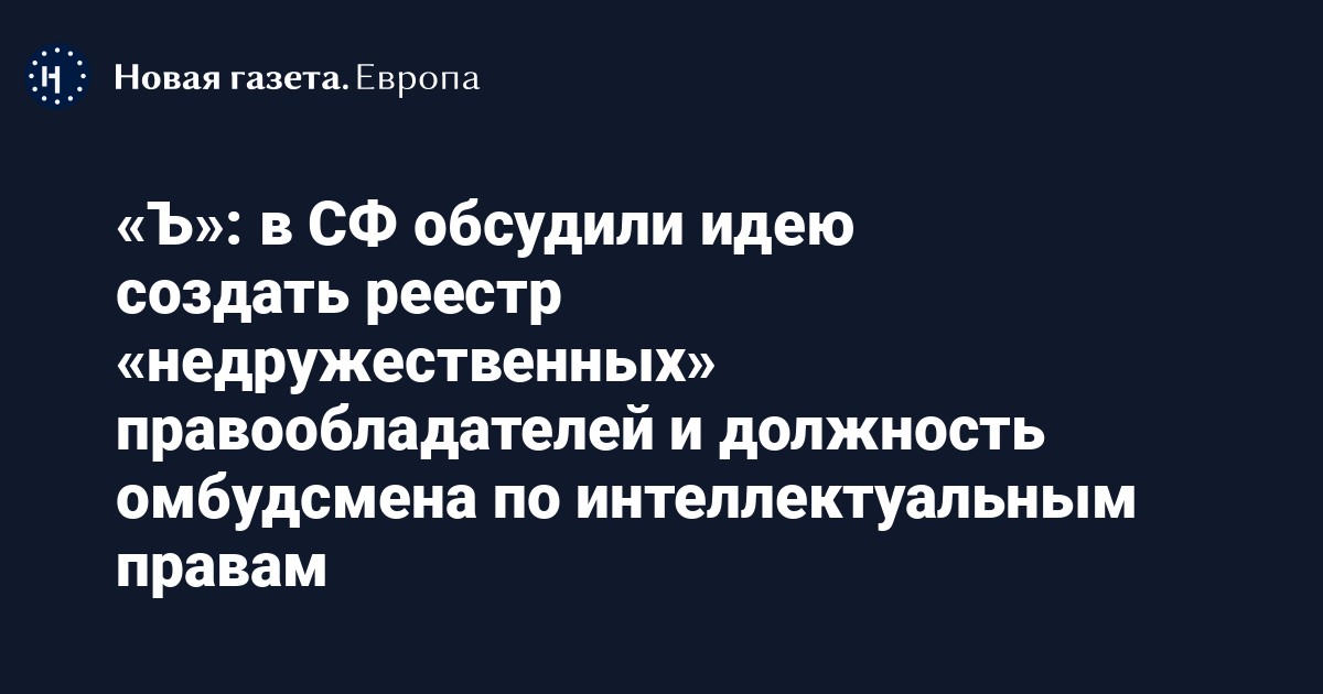 «Ъ»: в СФ обсудили идею создать реестр «недружественных» правообладателей и должность омбудсмена по интеллектуальным правам