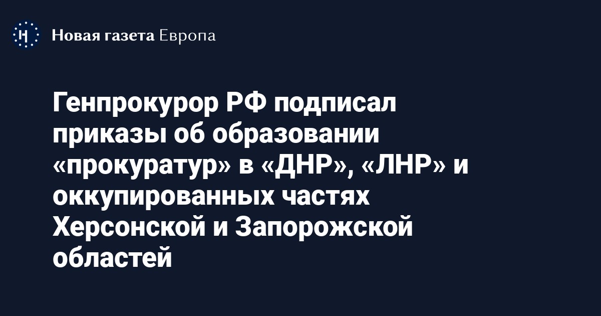 Генпрокурор РФ Игорь Краснов подписал приказы об образовании прокуратур в «ДНР», «ЛНР» и оккупированных Россией частях Херсонской и Запорожских областей Украины. Об этом сообщается в официальном канале российской Генпрокуратуры.
