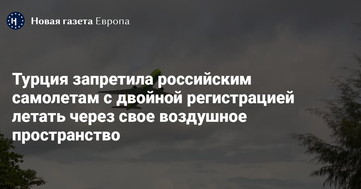 Власти Турции с 1 ноября запретили российским самолетам с двойной регистрацией (то есть зарегистрированным в двух странах) летать через свое воздушное пространство. Об этом сообщает РБК со ссылкой на гендиректора туроператора Pegas Touristik, члена совета директоров авиакомпании Nordwind Анну Подгорную и на источники еще в двух российских перевозчиках.