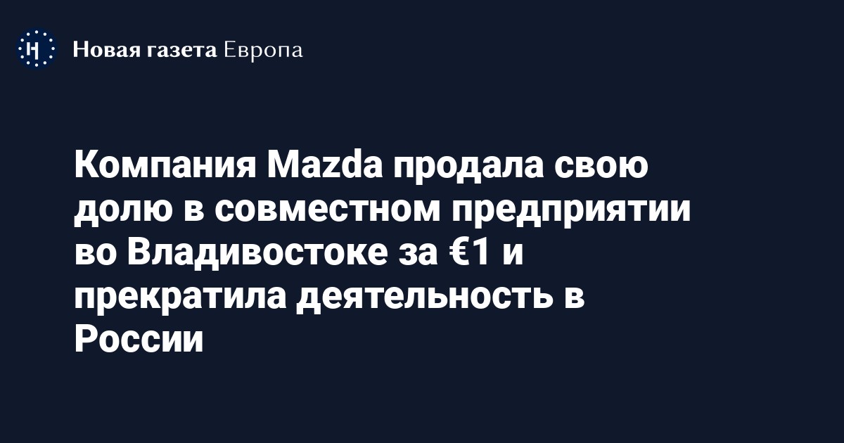 Японская автомобилестроительная корпорация Mazda Motor продала свою долю в совместном предприятии во Владивостоке за один евро и прекратила деятельность в России. Об этом сообщает ТАСС со ссылкой на сообщение концерна.