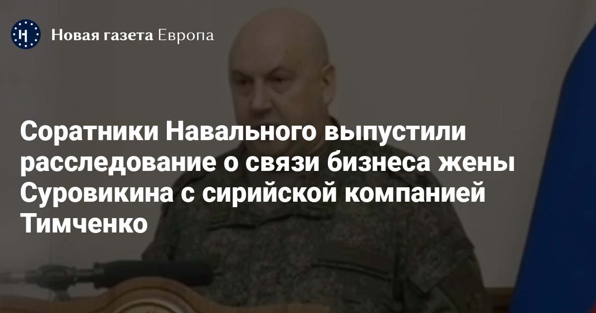 Команда Алексея Навального выпустила расследование о связях жены командующего ВС РФ на войне в Украине Сергея Суровикина с сирийским бизнесом миллиардера Геннадия Тимченко. Полный текст опубликован на сайте Навального.