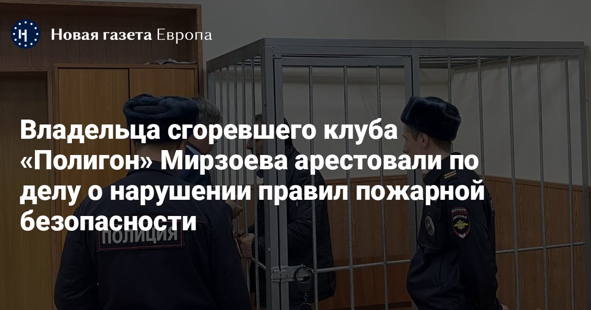 Мирзоева арестовали по делу о нарушении требований пожарной безопасности, сообщили ТАСС в Следственном комитете. Также владельцу сгоревшего клуба «Полигон» предъявлено обвинение.
