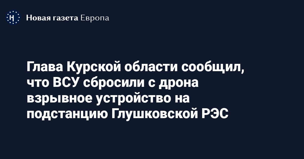 Губернатор Курской области Роман Старовойт написал в своем телеграм-канале, что Вооруженные силы Украины (ВСУ) сбросили с дрона самодельное взрывное устройство на подстанцию Глушковской РЭС.