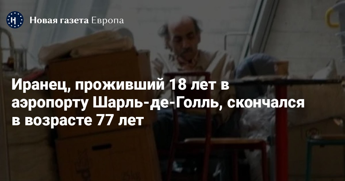 Иранец Мехран Карими Нассери, проживший 18 лет в парижском аэропорту Шарль-де-Голль и ставший прототипом главного героя в фильме «Терминал» режиссера Стивена Спилберга, умер естественной смертью в терминале 2F аэропорта. Об этом сообщает Al Arabiya.
