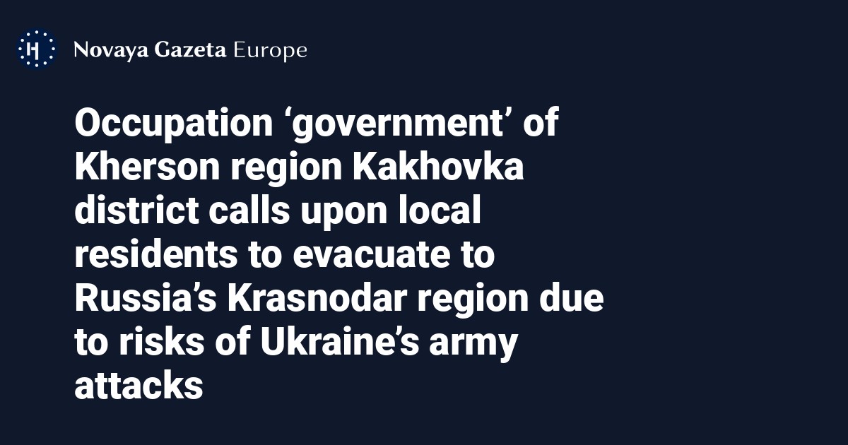 Occupation ‘government’ of Kherson region Kakhovka district calls upon local residents to evacuate to Russia’s Krasnodar region due to risks of Ukraine’s army attacks