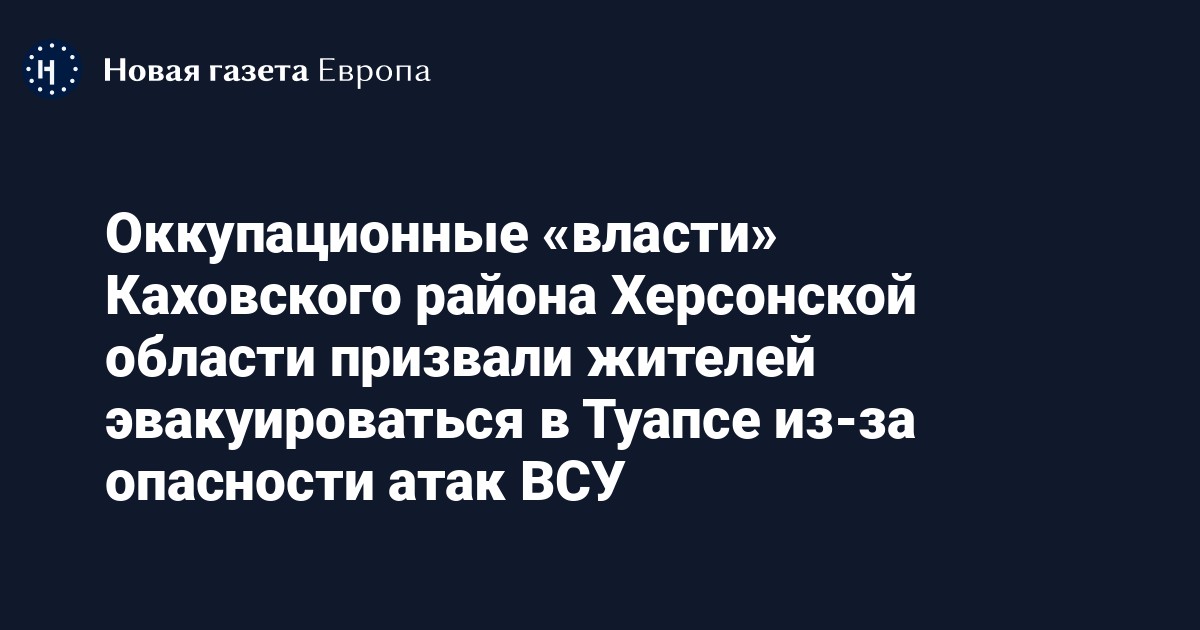 Оккупационная «администрация» Каховского района Херсонской области призвала своих сотрудников и местных жителей эвакуироваться в Краснодарский край. Об этом говорится в телеграм-канале «администрации».