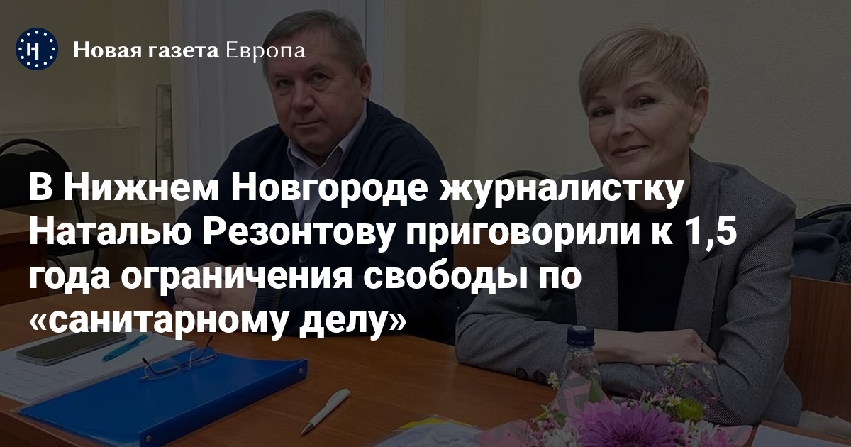 Нижегородский районный суд приговорил журналистку Наталью Резонтову к 1 году 6 месяцам ограничения свободы по «санитарному делу» за призывы на митинги в поддержку Алексея Навального в январе 2021 года (ч. 1, ст. 236 УК). Об этом «Новой газете. Европа» сообщила дочь Резонтовой.