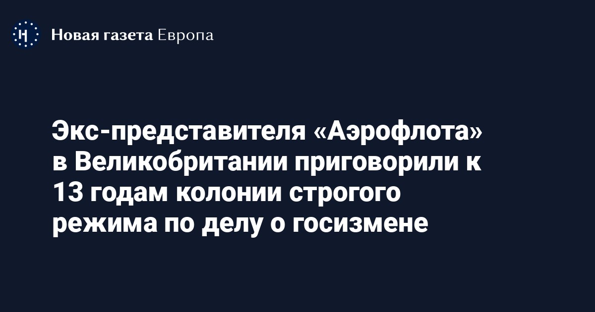 Мосгорсуд приговорил бывшего представителя компании «Аэрофлот» в Великобритании, россиянина Дмитрия Федоткина к 13 годам колонии строгого режима по делу о госизмене (ст. 275 УК), сообщает «Интерфакс» со ссылкой на пресс-службу суда.