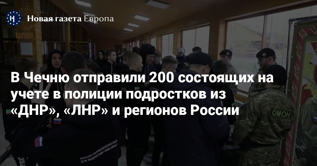 Глава Чеченской Республики Рамзан Кадыров сообщил в своем телеграм-канале, что в республику отправили 200 подростков из «ДНР», «ЛНР» и регионов России, состоящих на учете в полиции, в рамках федеральной программы «Подростки России».