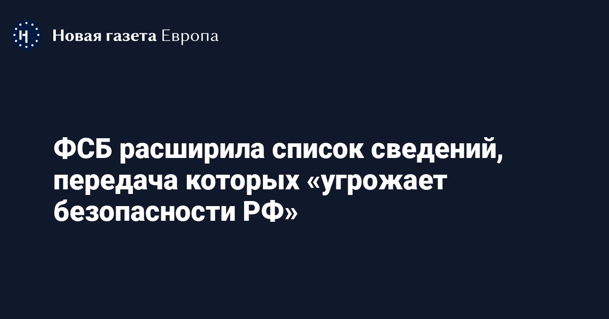 ФСБ расширила список сведений, передача которых «угрожает безопасности РФ»