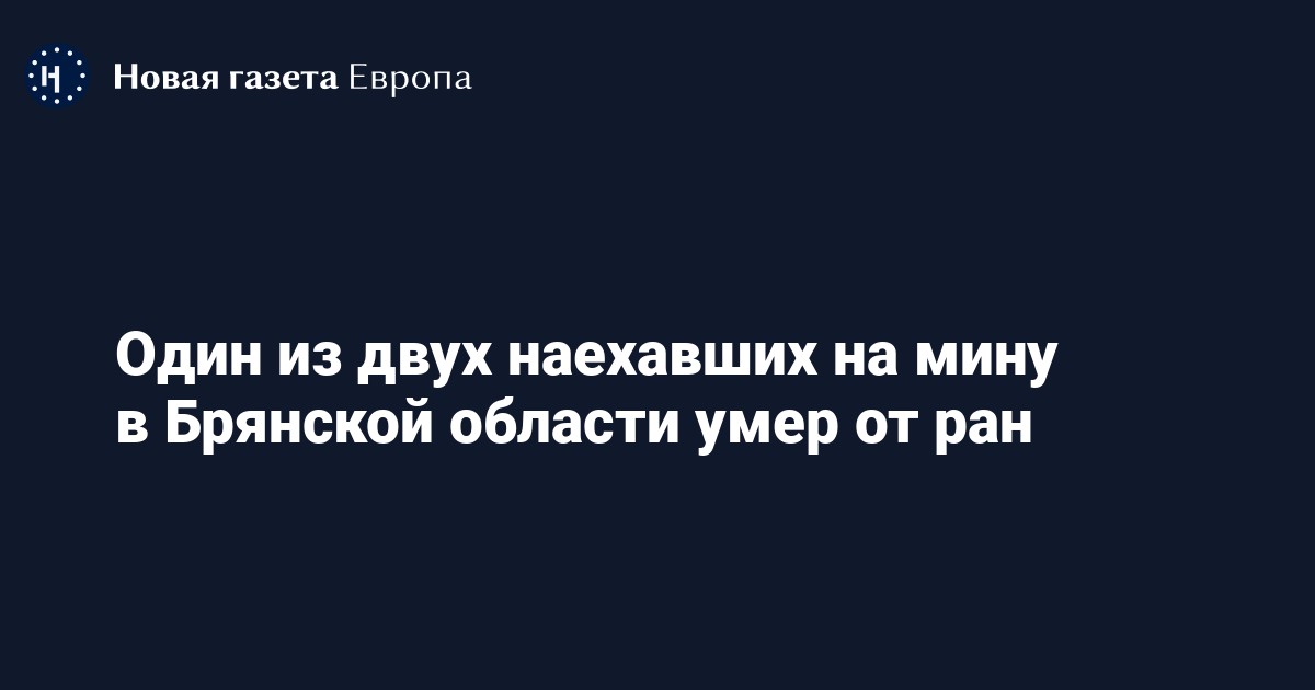В селе Азаровка Стародубского муниципального округа Брянской области один из двух местных жителей, наехавших на мину, умер от полученных травм. Об этом сообщил губернатор региона Александр Богомаз.