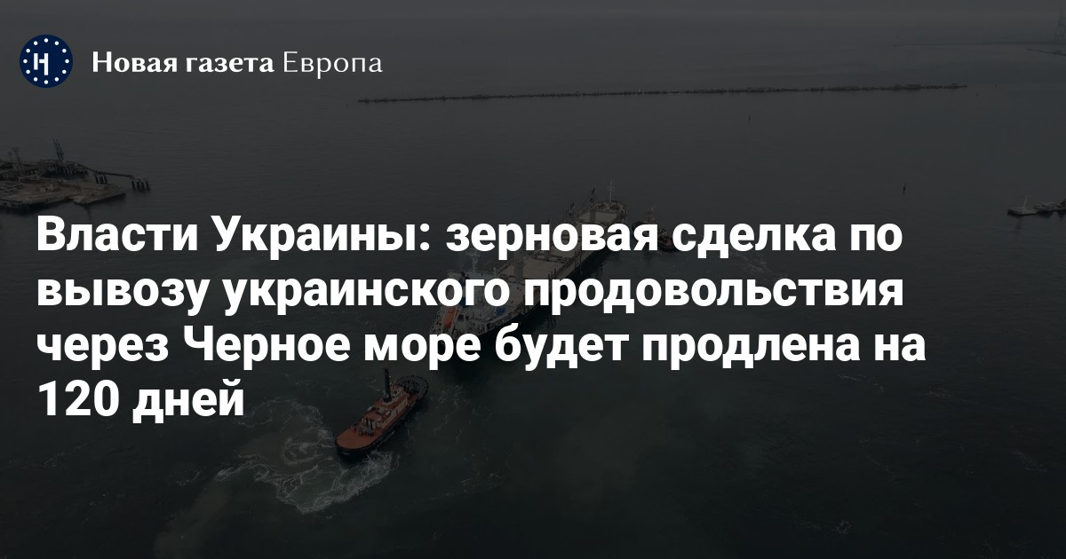 Президент Украины Владимир Зеленский подтвердил информацию о продлении зерновой сделки на 120 дней. «Зерновая сделка будет продлена на 120 дней. Вместе с генеральным секретарем ООН Антониу Гуттеришем и президентом Турции Реджепом Тайипом Эрдоганом приняли ключевое решение в глобальной борьбе с продовольственным кризисом», — написал он.