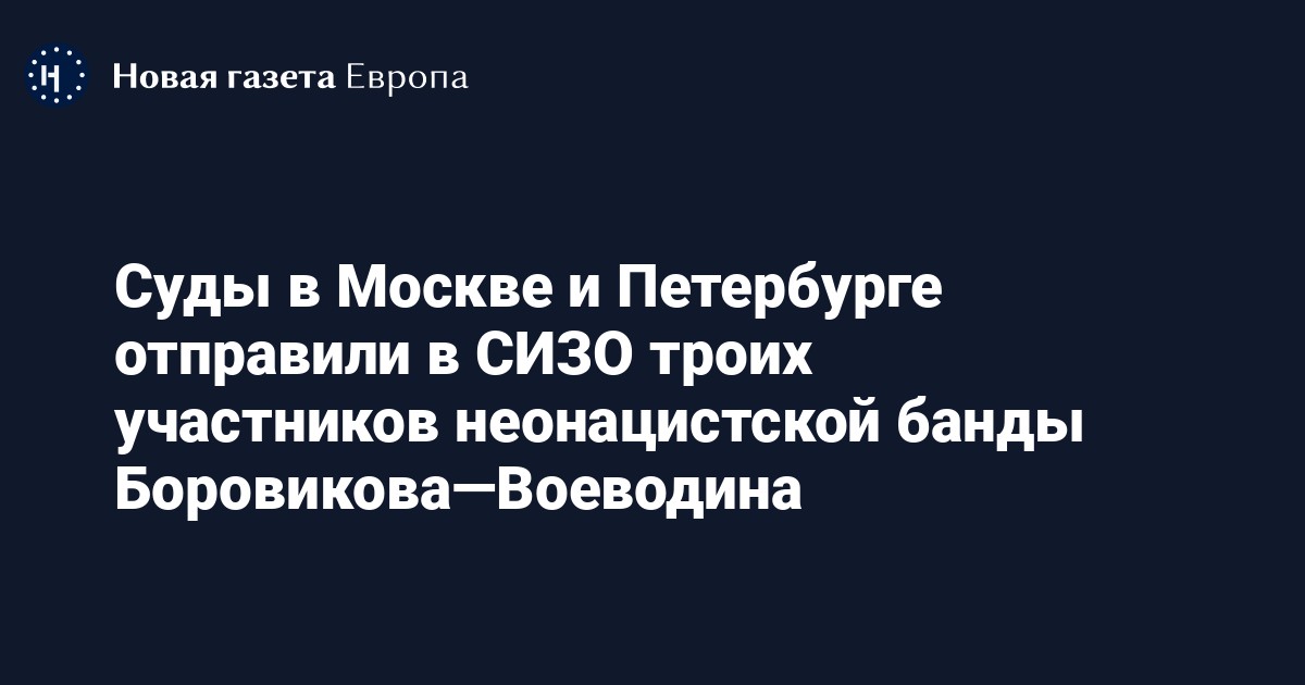 Ленинский районный суд Санкт-Петербурга заключил под стражу до 4 января участника неонацистской банды Боровикова—Воеводина (организованная преступная группа, именующая себя «Боевая террористическая организация» (БТО) Андрея Романова, обвиняемого в убийстве двух и более человек, совершенном группой лиц по мотивам ненависти (пп.а, ж, и, л ч.2 ст.105 УК). Об этом сообщила объединенная пресс-служба судов Санкт-Петербурга.