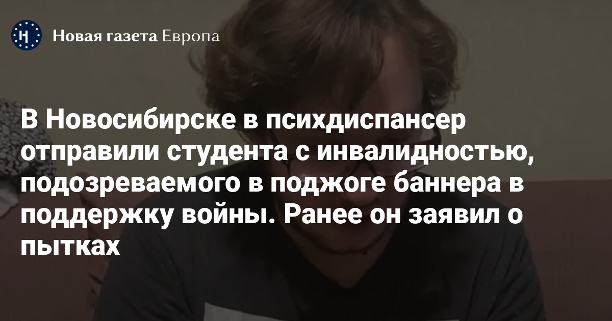 В Новосибирской области следствие отправило на экспертизу в психоневрологический диспансер студента с 3-й группой инвалидности Дмитрия Каримова, который ранее заявил, что под пытками признался в поджоге баннера в поддержку войны. Об этом сообщает местный портал NGS.ru со ссылкой на его адвоката Юрия Голубицкого.