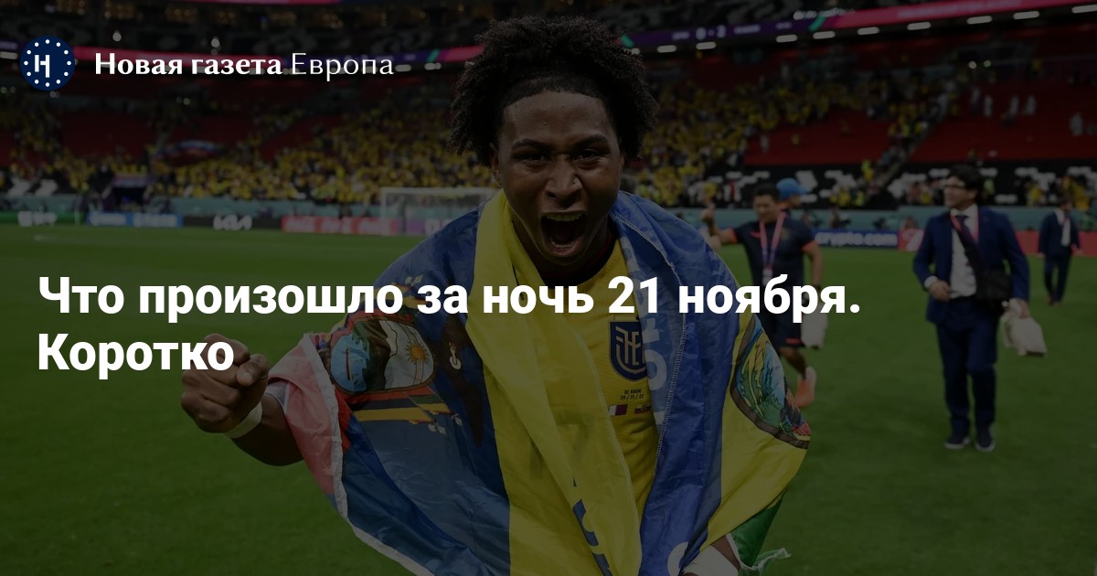 - Сборная Катара проиграла первый матч домашнего Чемпионата мира по футболу команде из Эквадора со счетом 0:2. Так, катарские футболисты стали первой сборной в мире, проигравшей стартовый домашний матч Чемпионата мира. В ходе матча болельщики Эквадора также начали скандировать «Queremos cerveza», что означает «Мы хотим пива».
