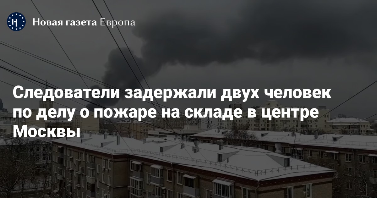 По делу о пожаре на складе на Комсомольской площади в Москве следователи задержали специалиста по охране труда и пожарной безопасности Владимира Коновалова и генерального директора компании «Ново Флоре» Антона Мачелюка, арендующего сгоревшие помещения. Об этом сообщается на сайте Следственного комитета России.