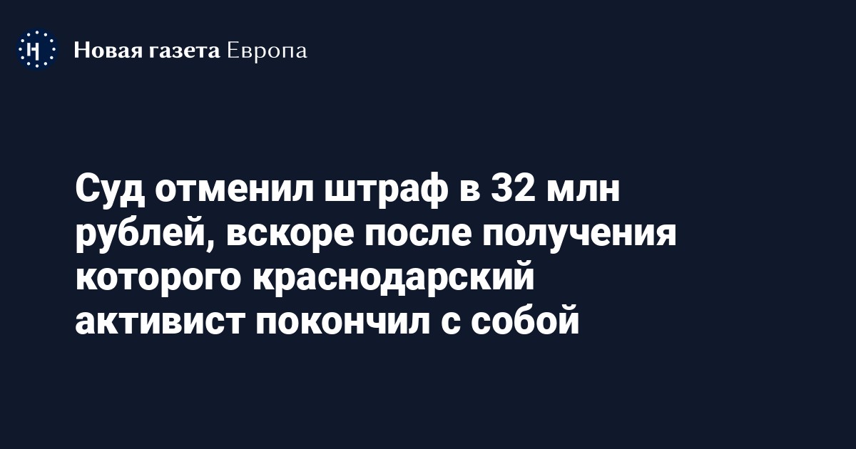Кассационный суд Краснодарского края признал незаконным штраф в 32 миллиона рублей для организации активиста движения «Полтавская против свалки» Андрея Гаряева. Об этом сообщается на сайте суда.
